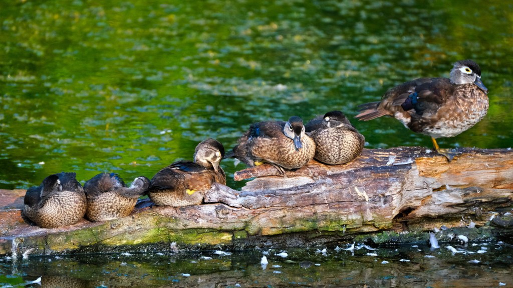 And the quintet of wood duck ducklings on the pond continue to grow up under their mom’s watchful eye.