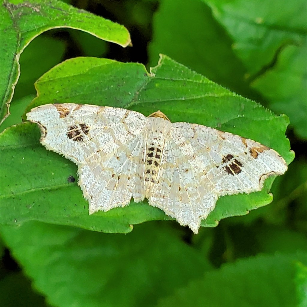 I waited around a bit, and it didn’t come back, so off to the river I went. Along the way, I spotted this intricately marked moth, who turns out to be a promiscuous angle moth (Macaria promiscuata). I knew angles could be obtuse or acute, but I never knew they could also be promiscuous. Ha!
