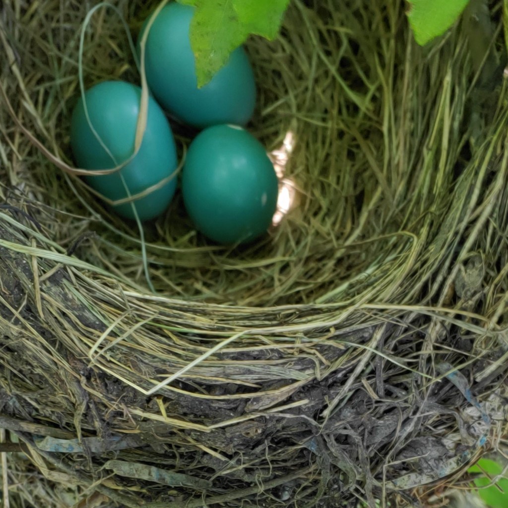 Finally, as I made my way out to Wilson Drive, I remember to check on our new nesting robin, and she wasn’t home at the moment so I tried to sneak this shot as quickly as I could with my phone. Woo hoo! Three more eggs to hatch.