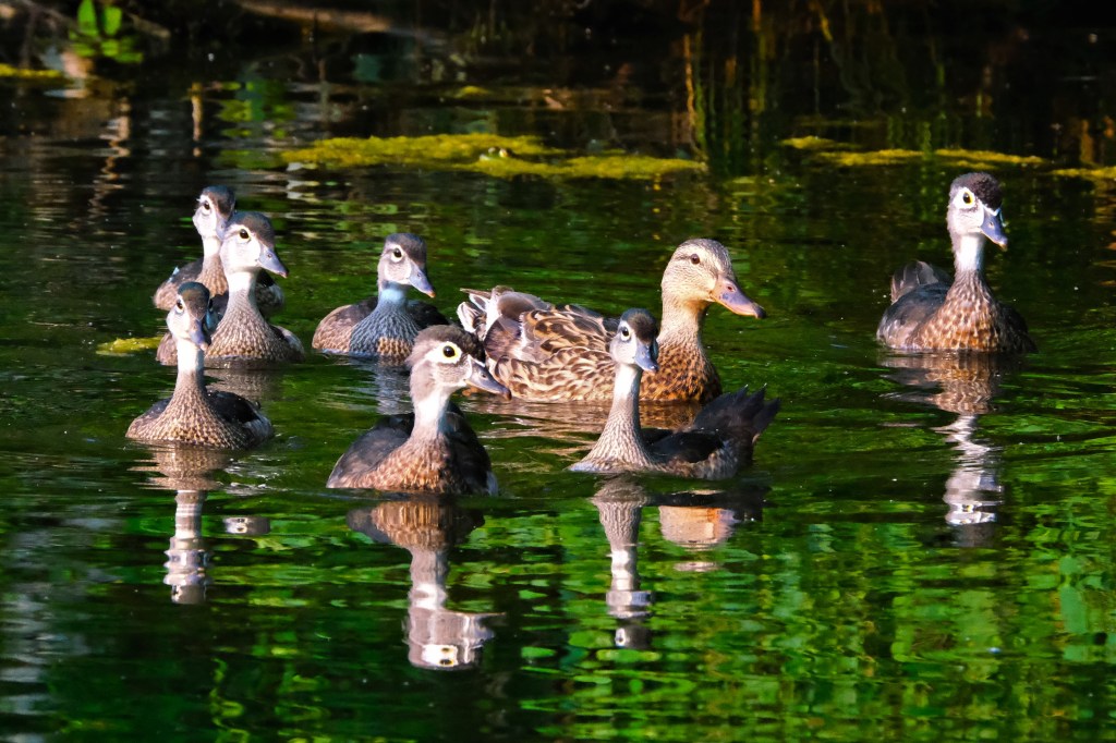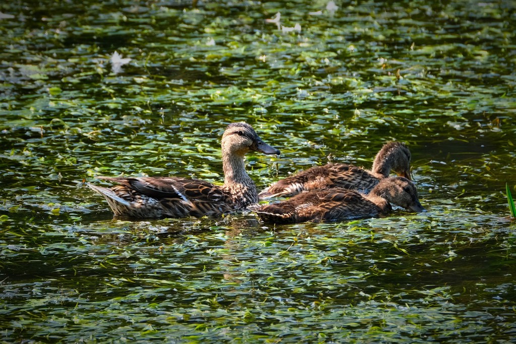 While, on the water, these mallard ducklings were too busy foraging and let Mom keep an eye on me.