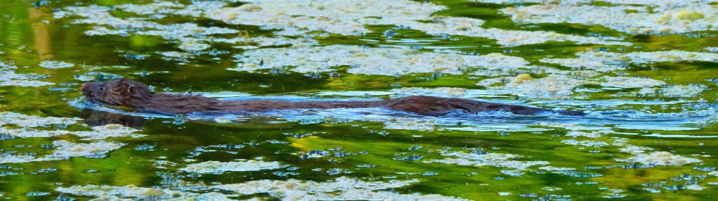 Nope, that’s not a hawk, nor a muskrat, beaver, otter, or even raccoon. Instead, this critter was long and skinny with a pointy nose we haven’t seen before, and thus I believe it is an American mink (Neogale vison)! At last!