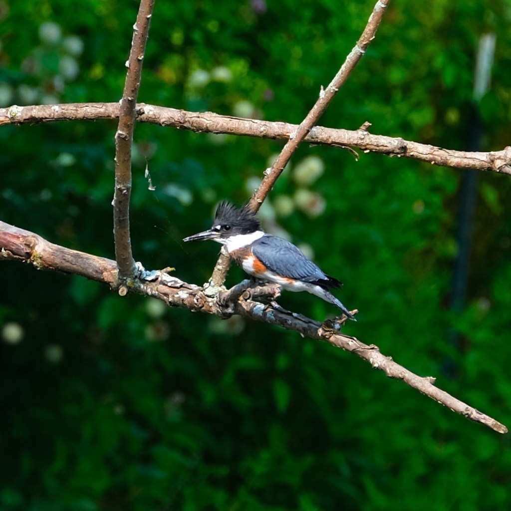 On the island in the river at the north end, a female belted kingfisher uncharacteristically posed for this portrait.