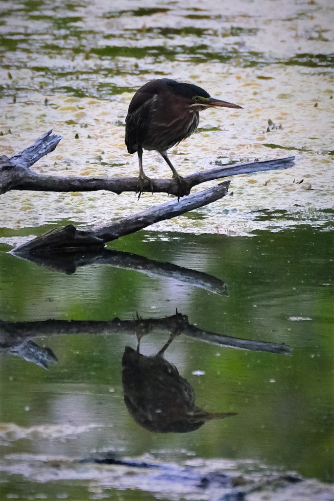 I never did get a good shot of the blue heron, but this green heron did it’s best to fill the gap.