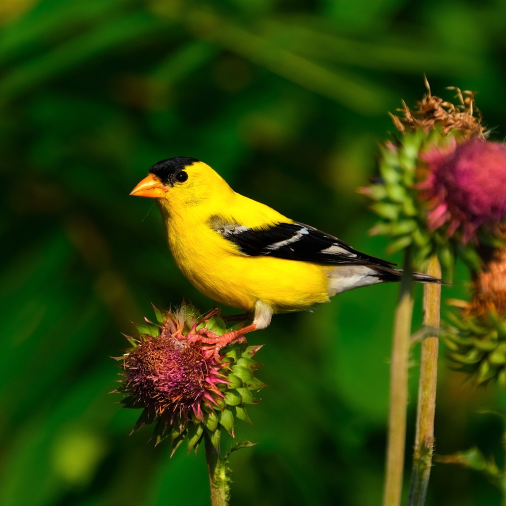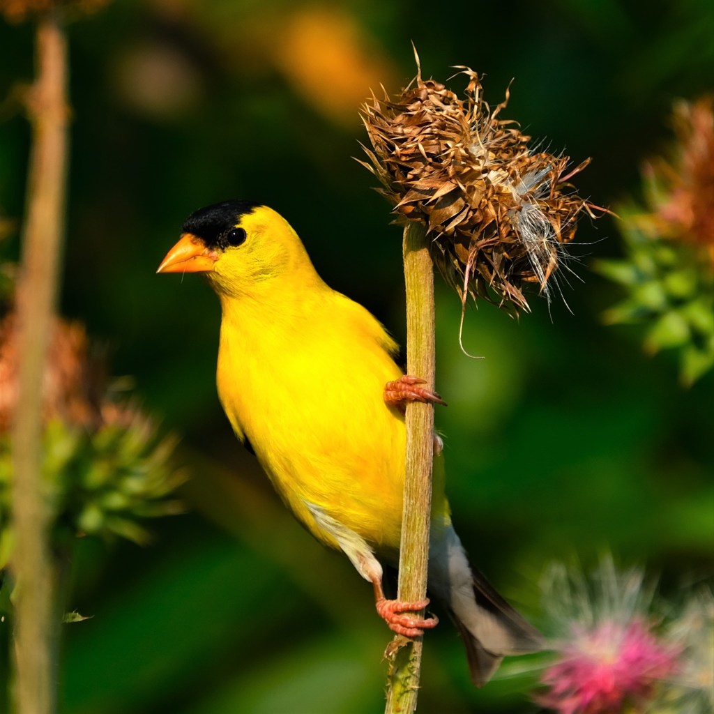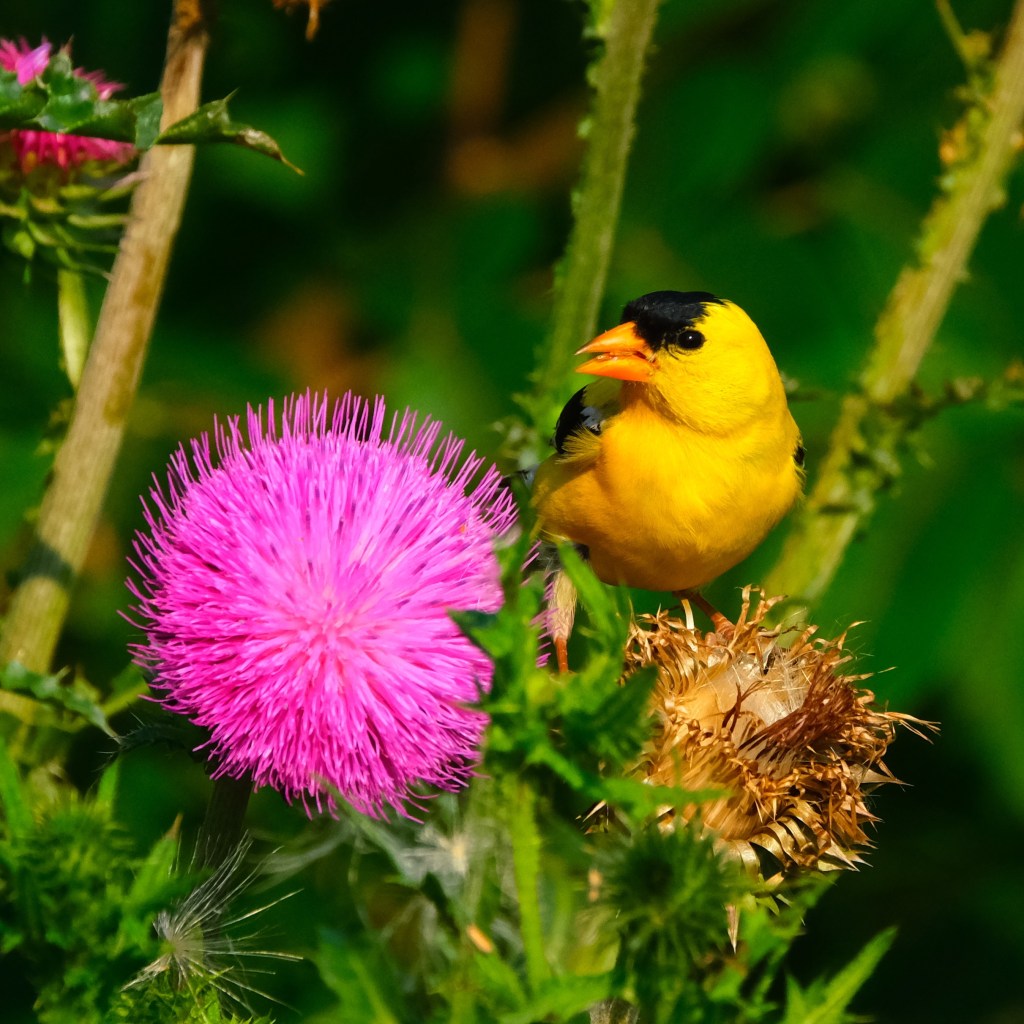 Finally, by the soccer fields, I found no butterflies today, but the goldfinch were back on the bull thistle and being quite photogenic about it.