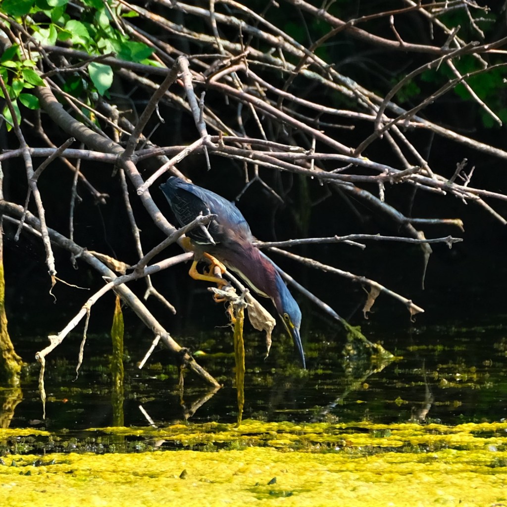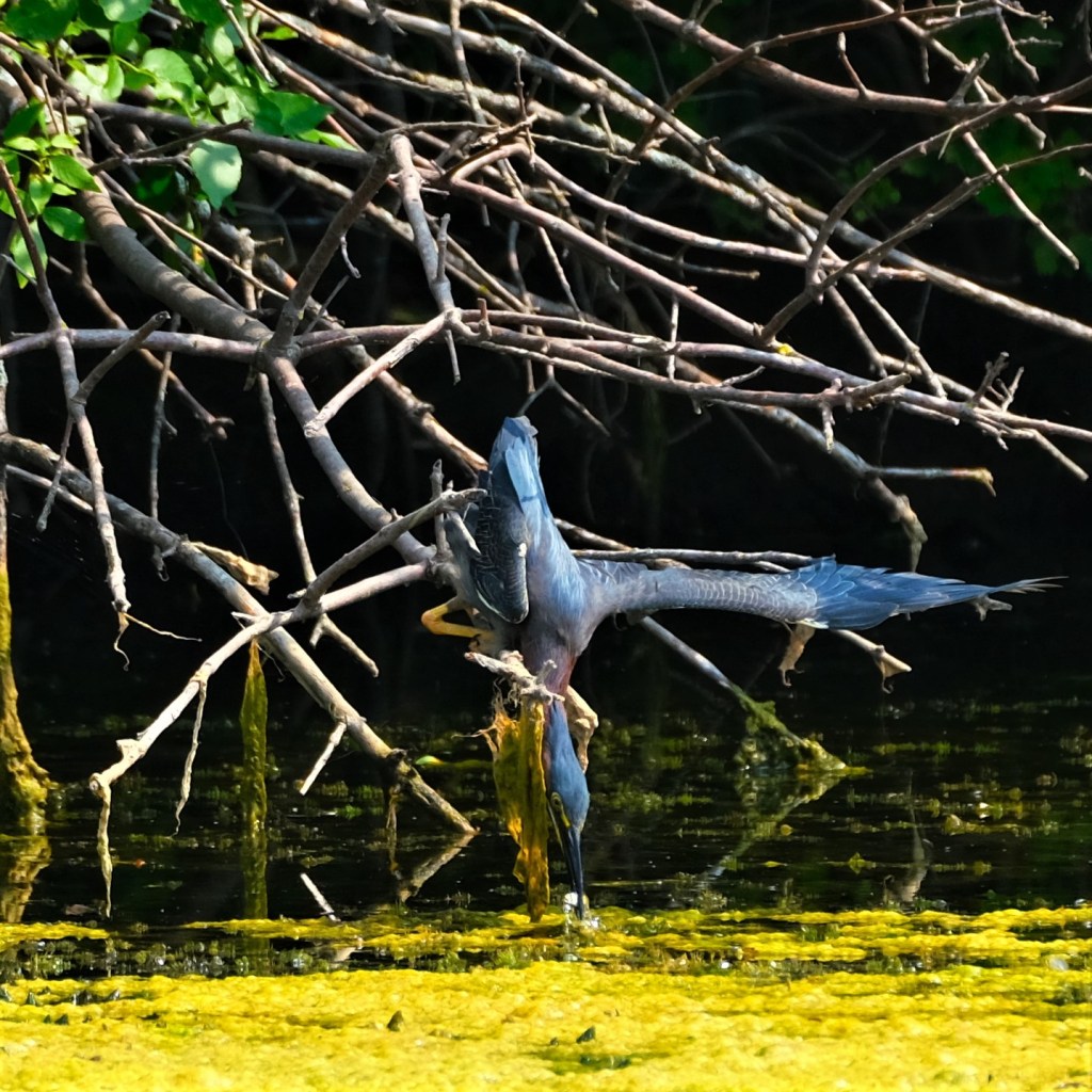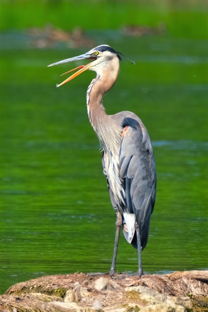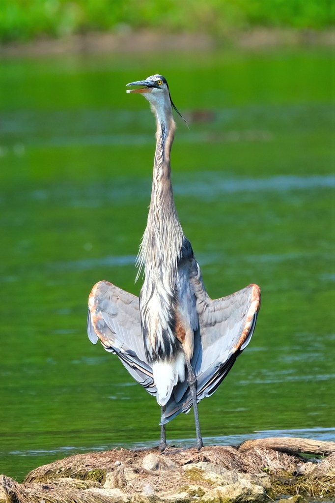 Oof! It is seriously hazy, hot, and humid out there, and it appears that even this blue heron on the river was feeling it.