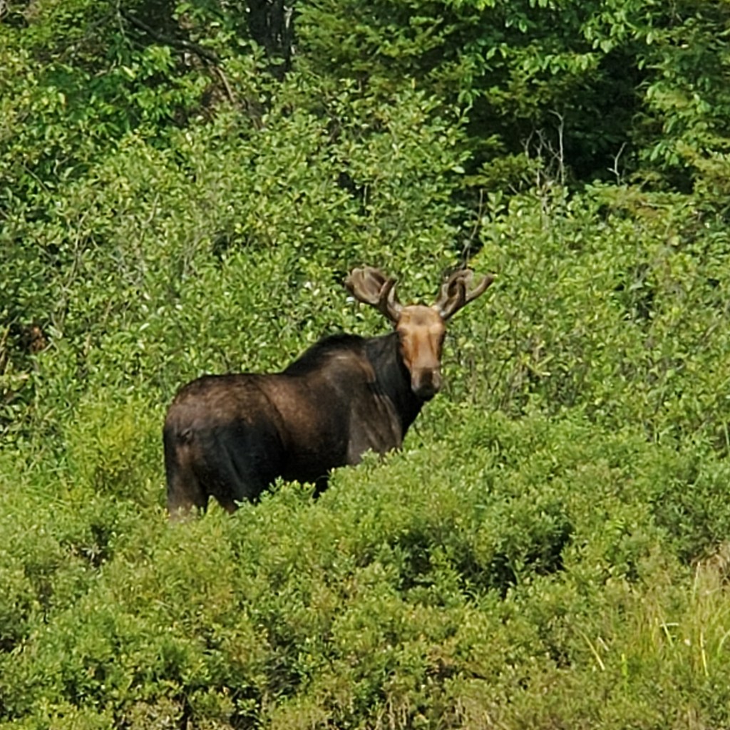 Here is his commentary: “Highlight of the trip – was looking for moose tracks on the road to show to Lucas, [is son,] and ended up coming across this bull moose minutes later.”