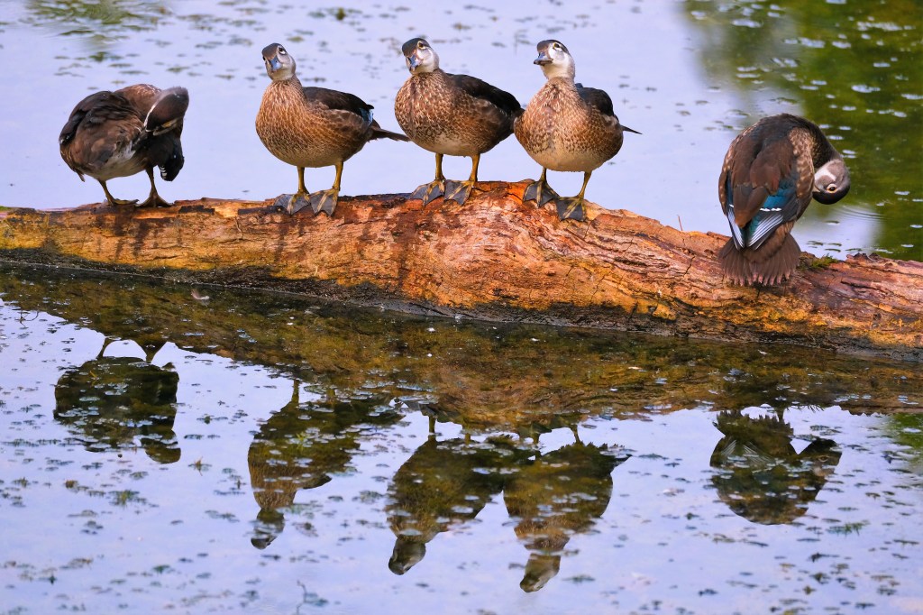 After that amazing start, there was not much else to report. I did spot a blue heron on the pond but failed to get its picture. Instead, check out this cast of wood duck characters keeping their eyes on a squirrel or two making a racket rustling nuts out of a tree at the north end of the pond.