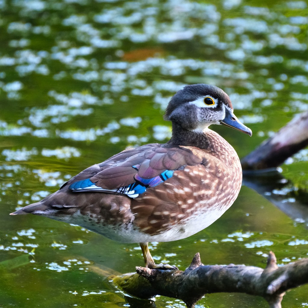 The ducks seemed to have lost their interest in storm debris, and here’s one just resting on a stick instead.