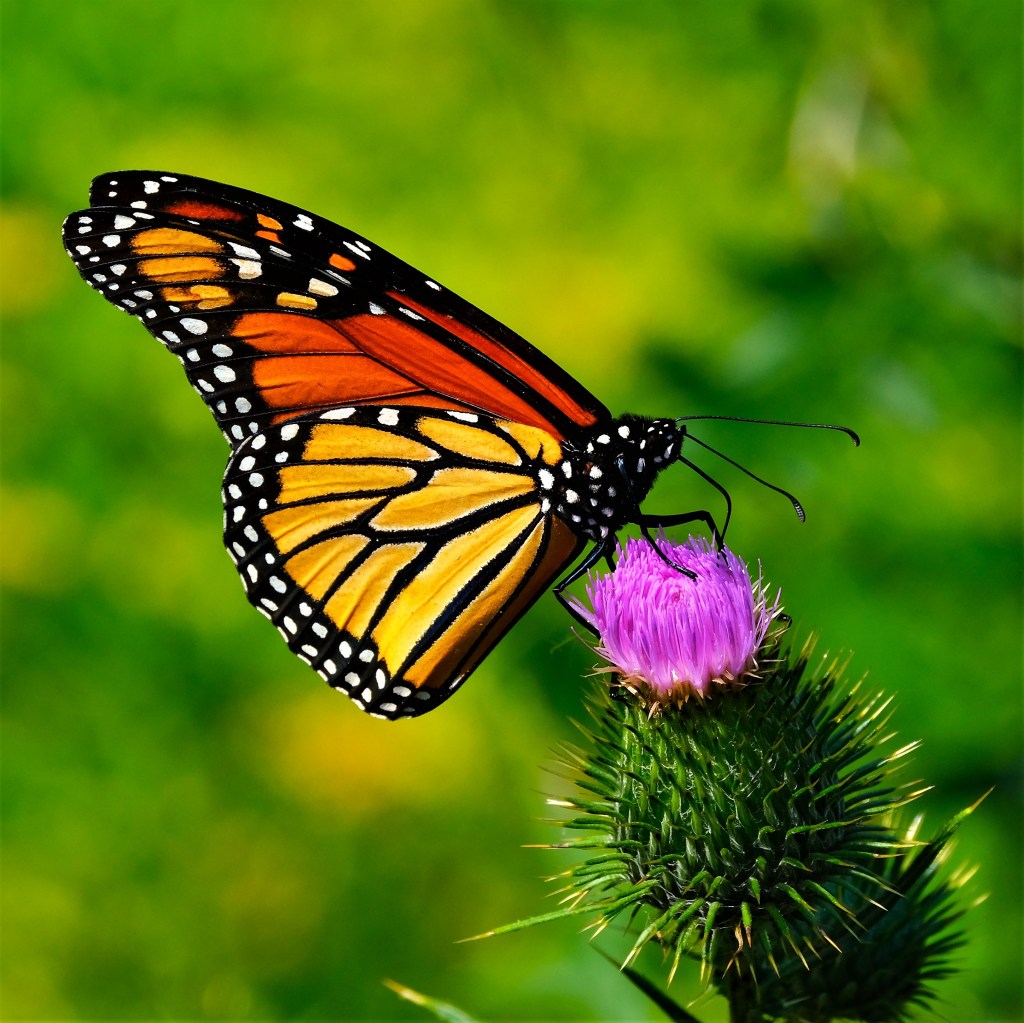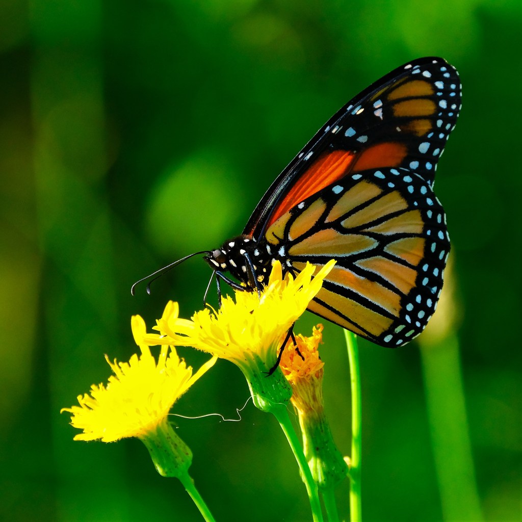 There was another monarch, and it even photobombed the swallowtail, but that one came out blurry, so here’s a prettier picture.