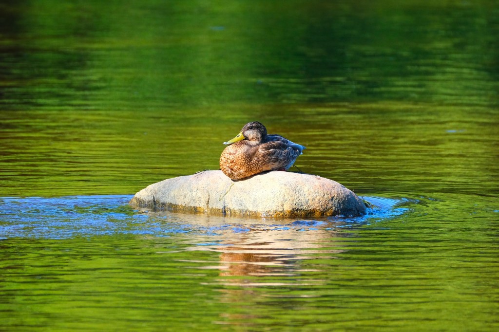 There were no herons today, and I failed to get a picture of Ol’ Snappy, so I headed to the river where I found another mallard relaxing in the morning sun.