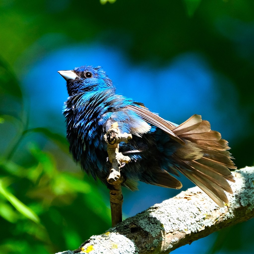 At the north end, where I used to see indigo buntings regularly last summer, but from where they’ve been missing for most of this summer, one finally stopped in to say hi.