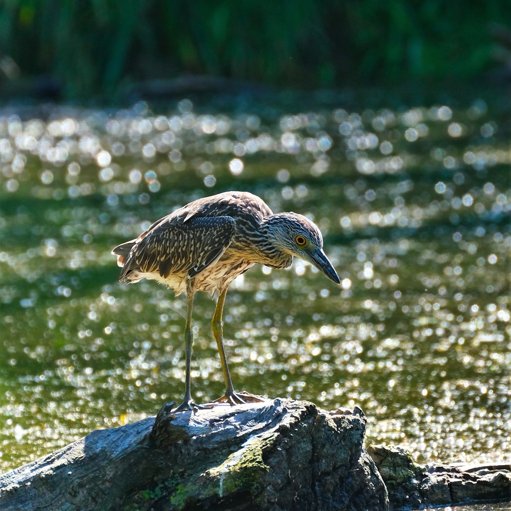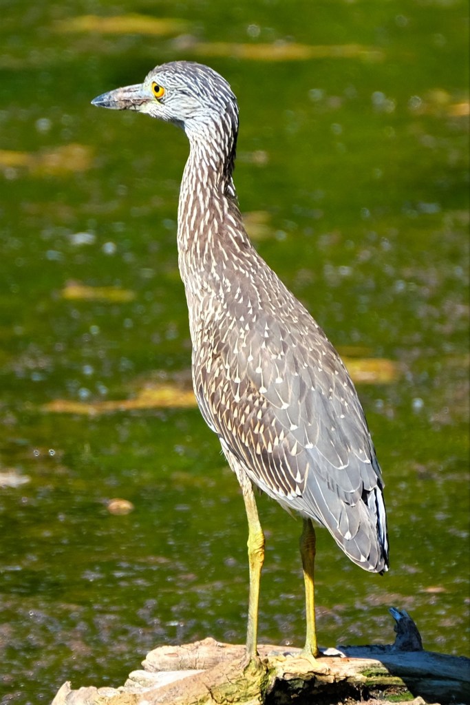 Since I posted the pictures from the previous sighting on Instagram, I’ve heard that one person disagrees and two agree with my call that it is a young yellow-crowned night-heron a bit north of its usual range and not a black-crowned night-heron like the one we saw on the pond last summer. We’ll see if that trend holds when I post these new pictures.