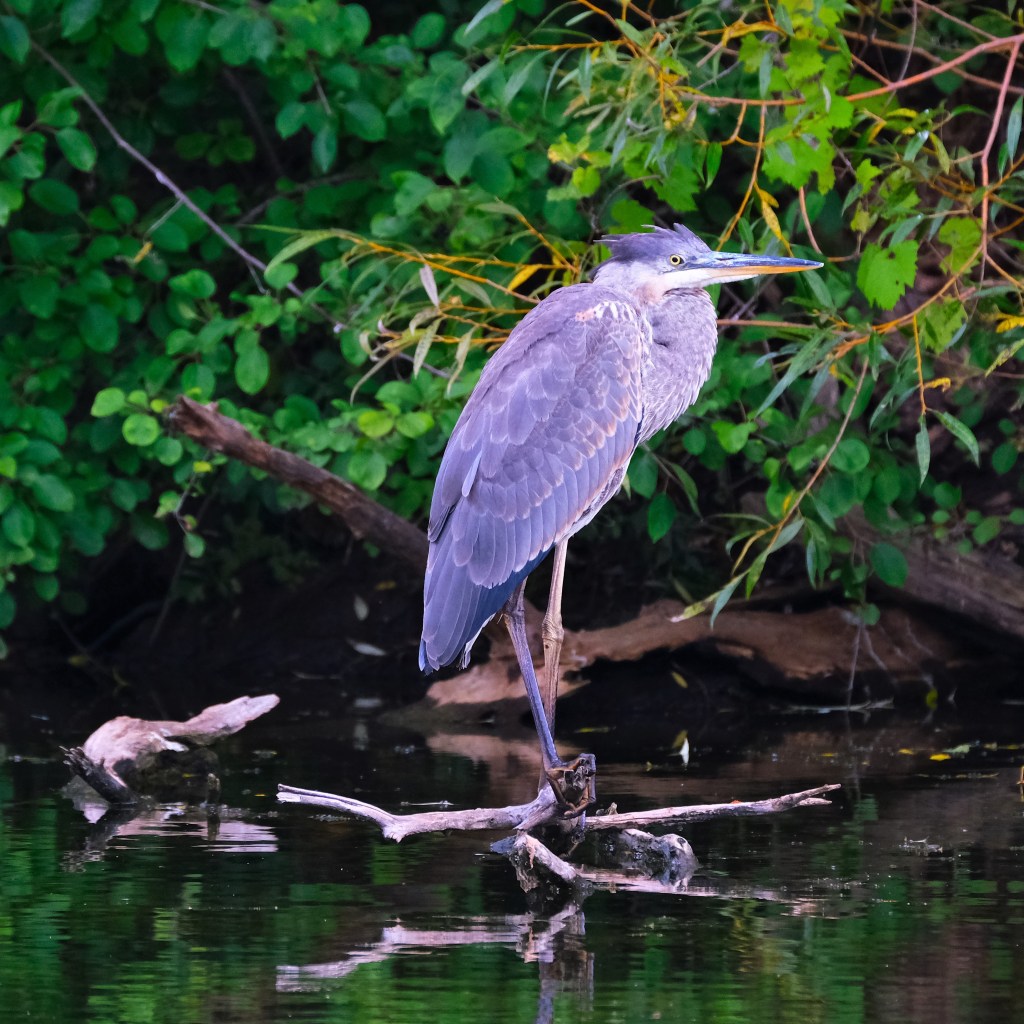 Anyway, a blue heron was on the pond when I arrived, and Lisa said there were two when she first approached. Here’s the one that stuck around.
