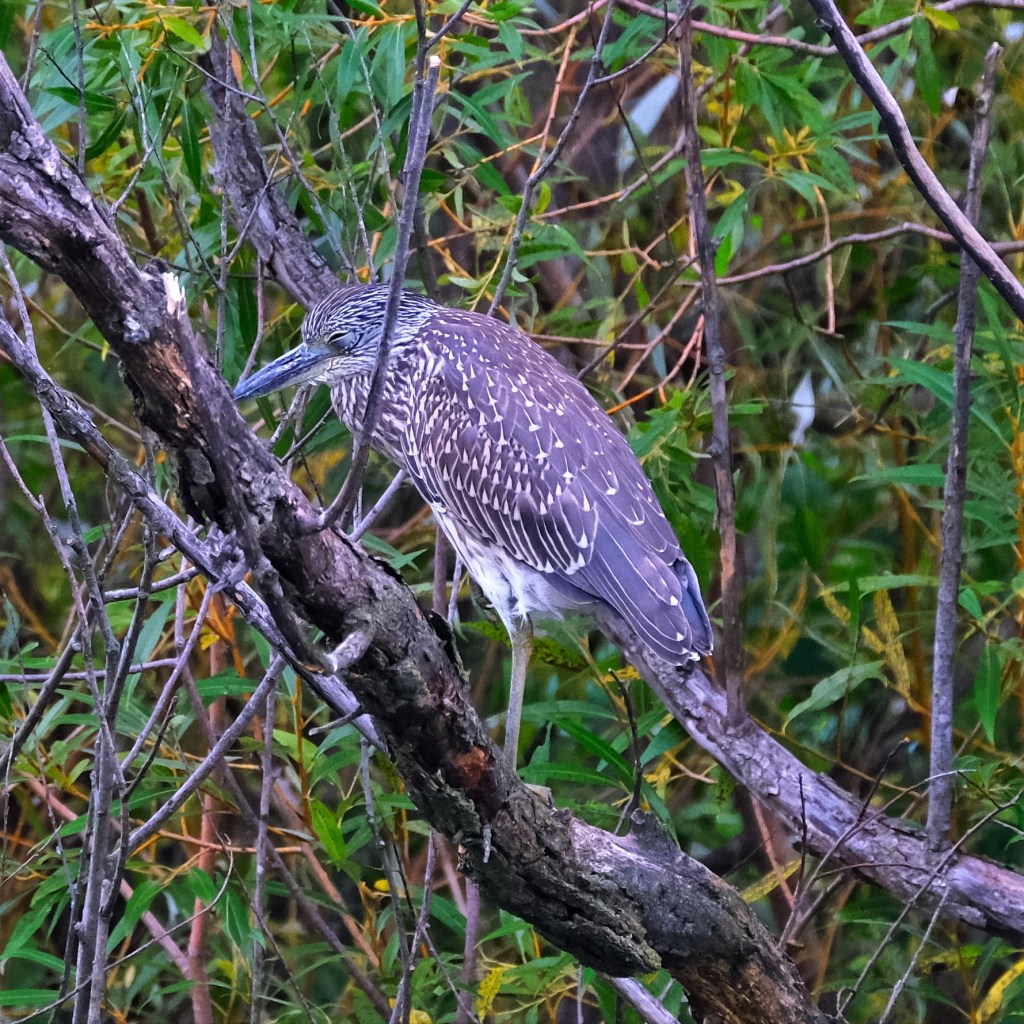 In the branches right above it was our new little friend, the young night-heron, who appears to be dozing off at the moment.