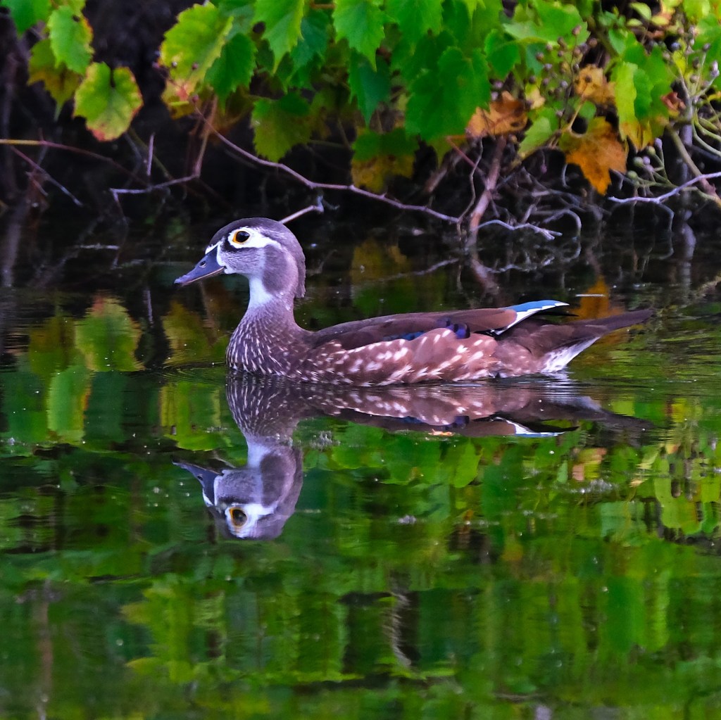 I counted seven wood ducks and three mallards today, and here is one of the pretty little female wood ducks drifting by the island.