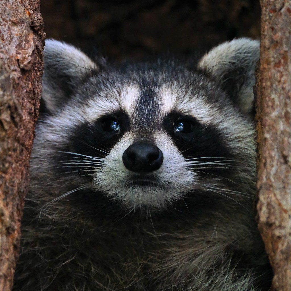 I had a hope for another little parade of songbirds, as we saw yesterday, but that was not to be. Instead, there was quite a hubbub among the chickadees in the big tree right over the bench on the west lawn, and as I got closer, I could see several individuals hopping from branch to branch near the middle of the tree as they chirped, but it took me a moment to finally spot the cause of all their excitement.
