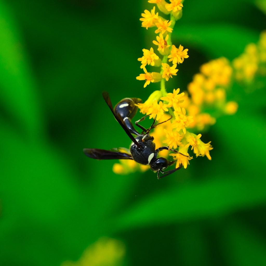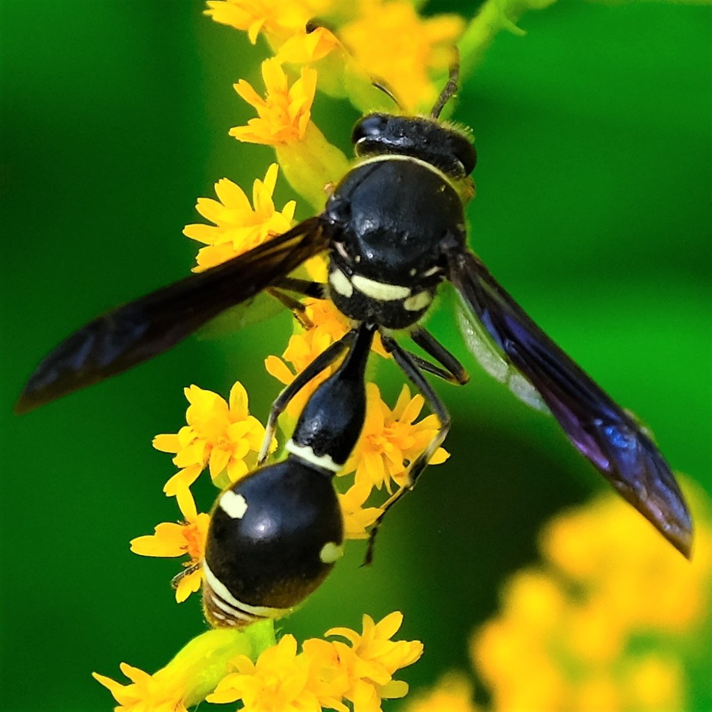 I thought I had caught a nice example of that situation for you in the images below, but it turns out that this is a potter wasp instead, specifically Eumenes fraternus, and while the female does build “a miniature pot out of mud in which it lays an egg and places a live caterpillar” for the developing larva to feed upon, “the adult wasp feeds primarily on nectar,” as this one was contentedly doing.