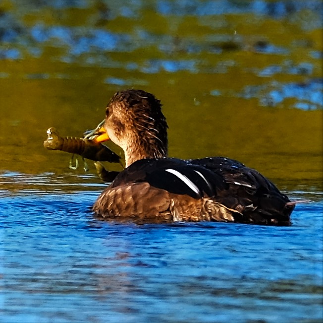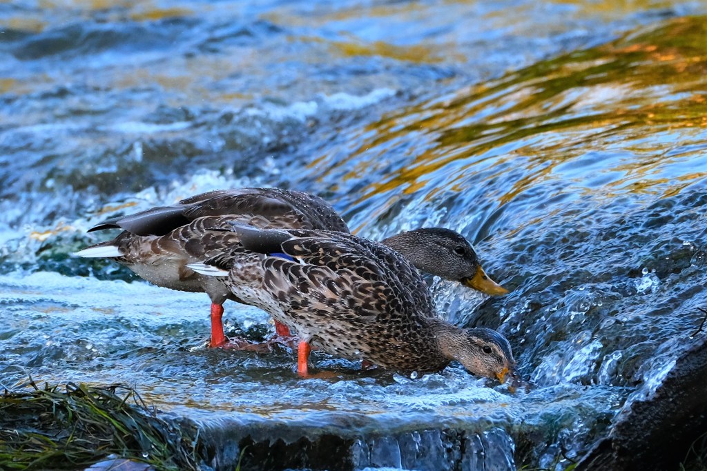 In contrast, things remain a bit more lively on the river, and here are a pair of mallards busily foraging in the falls.