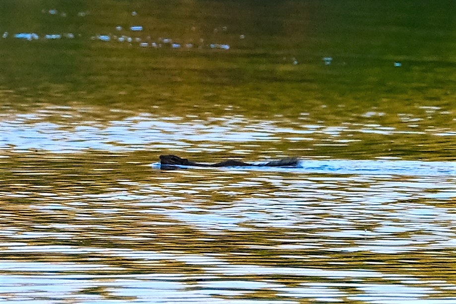 The prize for surprising me this morning, however, goes to this intrepid squirrel, yes, a squirrel, swimming briskly across the river to the southern island. You can even make out its cute little nose and bushy tail. I was scanning ahead with my binoculars, hoping to find a new migrant in the shallow waters between the islands, when I spotted it, and I couldn’t even tell what it was at the time. Only when I could look at the image on my computer did I finally realize what it was. Who knew, right?