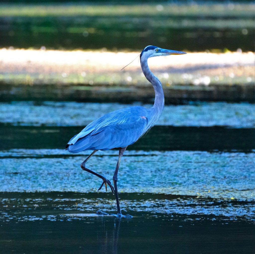 Plenty of other regulars were there again, including geese, more mallards, wood ducks, and this blue heron.