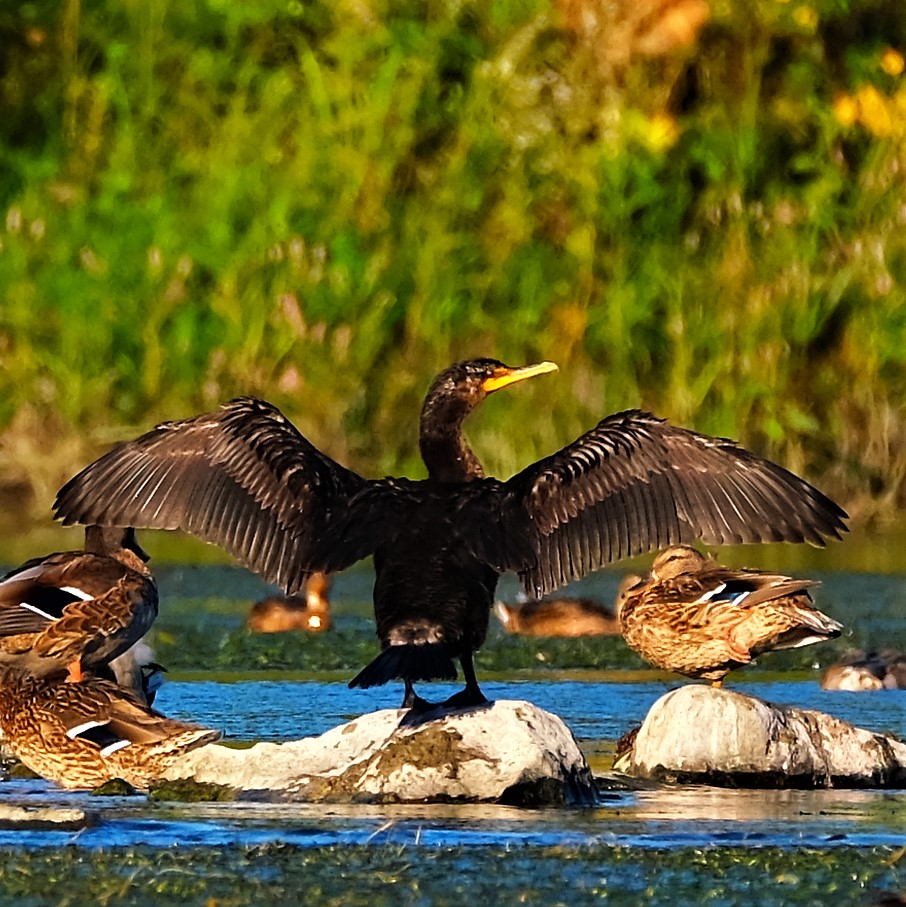 A cormorant was back and drying out after a quick dip, and it only has to make it to southern Illinois for the winter, so it has time to dawdle.