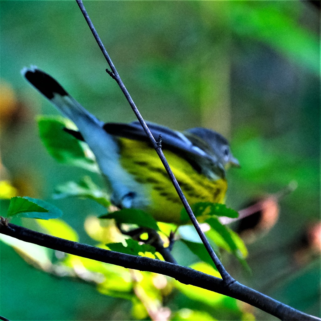 Meanwhile, in the trees right behind me, this pretty little female or immature magnolia warbler (Setophaga magnolia) was hunting up its own breakfast before continuing its long journey to southern Central America.