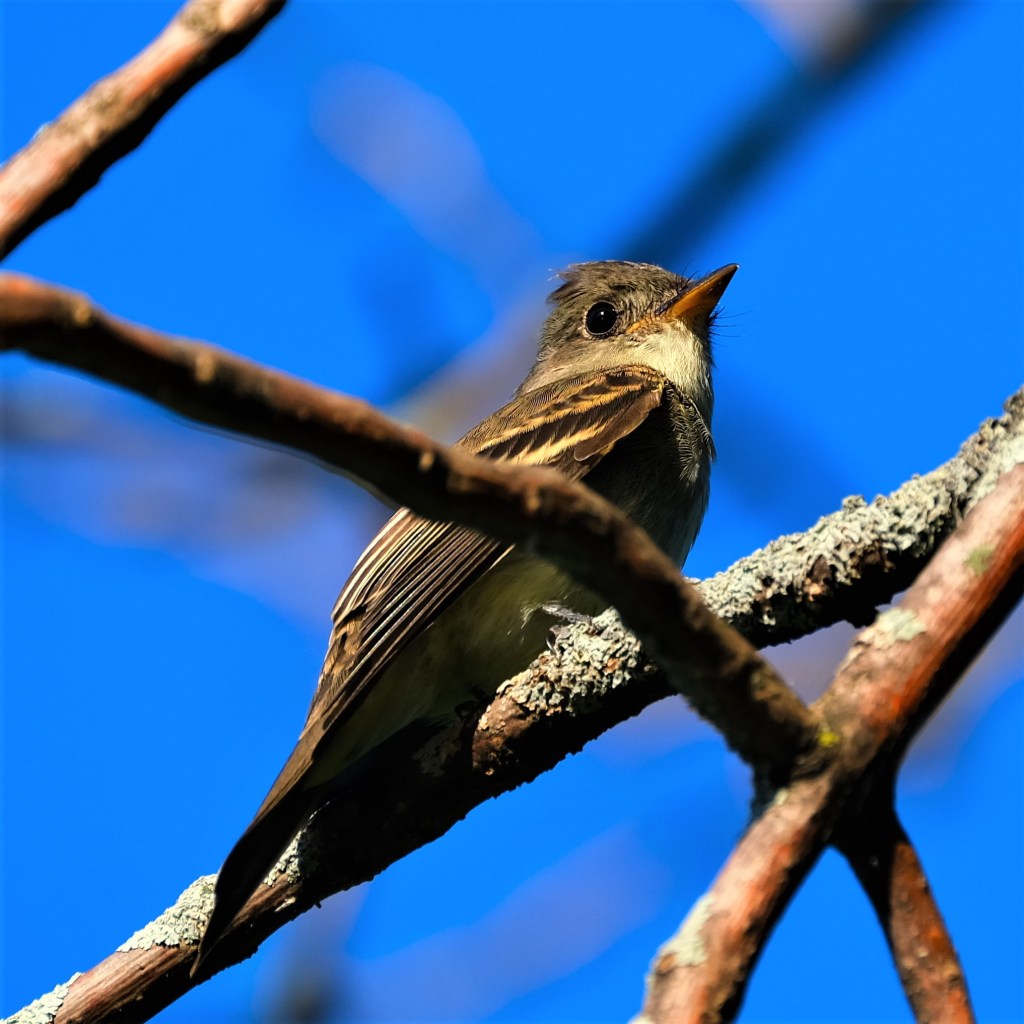 While I was focusing on sticks, this flycatcher patiently waited in the warm morning sun for me to pay it some attention. These cute pictures are not perfect for identification, but I’m gonna go with eastern wood-pewee anyway.