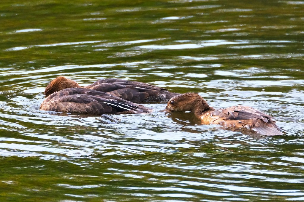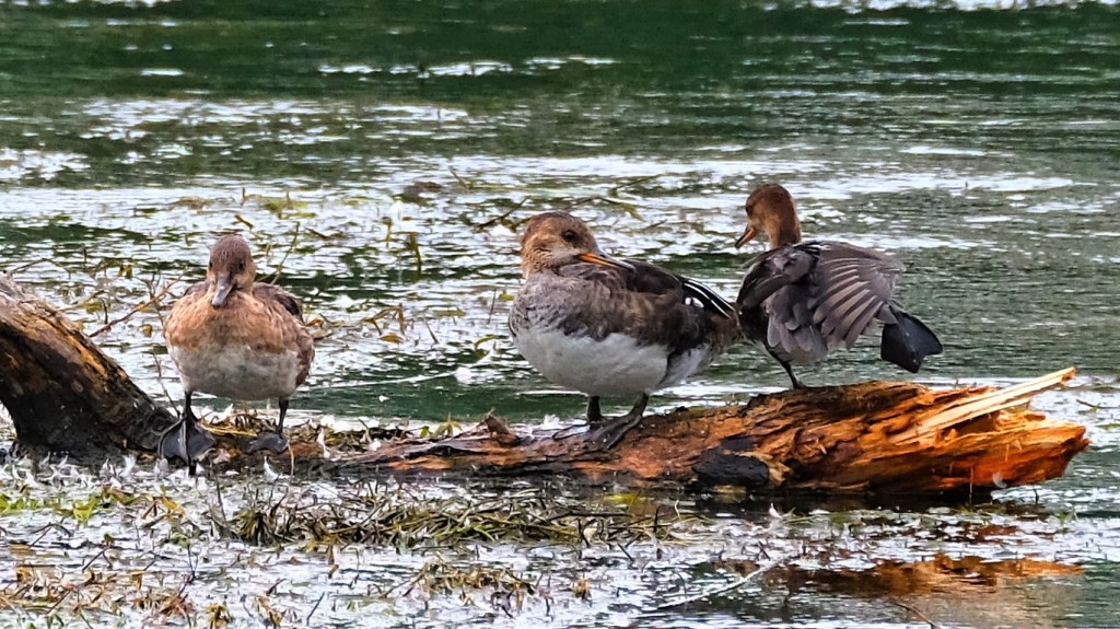 The mergansers were just hauling them in and at one point I thought to myself, “are they catching wild animals or harvesting fruit?” Anyway, here’s one last picture of the three of them all hunting together.