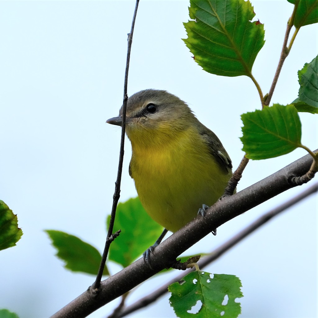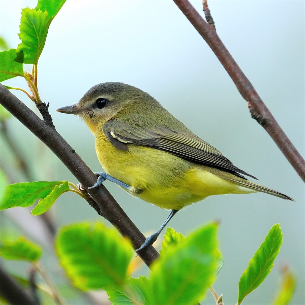 They also explain thatPhiladelphia and Red-eyed Vireos [whom we just saw last Wednesday] sing very similar songs, with Red-eyed’s usually sounding simpler and faster. As if to make matters more confusing, where these two species overlap on the nesting grounds, the Philadelphia Vireo may sing perfect imitations of Red-eyed song. These imitations, scientists speculate, might help the smaller Philadelphia to avoid aggression by the larger, heavier Red-eyed Vireo.