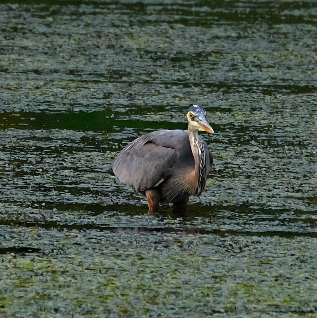 The blue heron seemed to look upon the spectacle with some annoyance, but that look could just as well be aimed at me. For all the pictures I’ve taken of this one, you’d think we’d be best buddies by now.