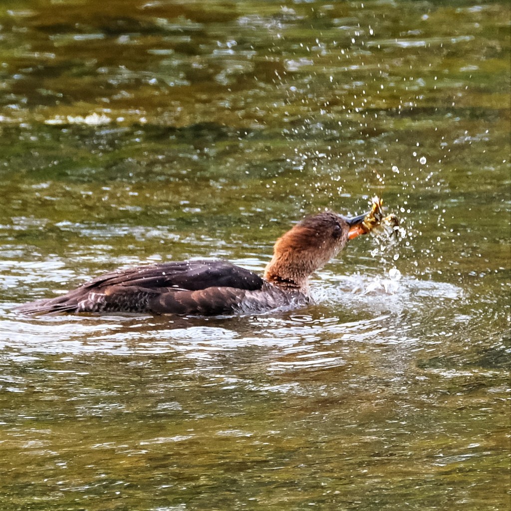 Here’s an example of the thrashing the mergansers give the crayfish to prepare them for a ride down an esophagus.