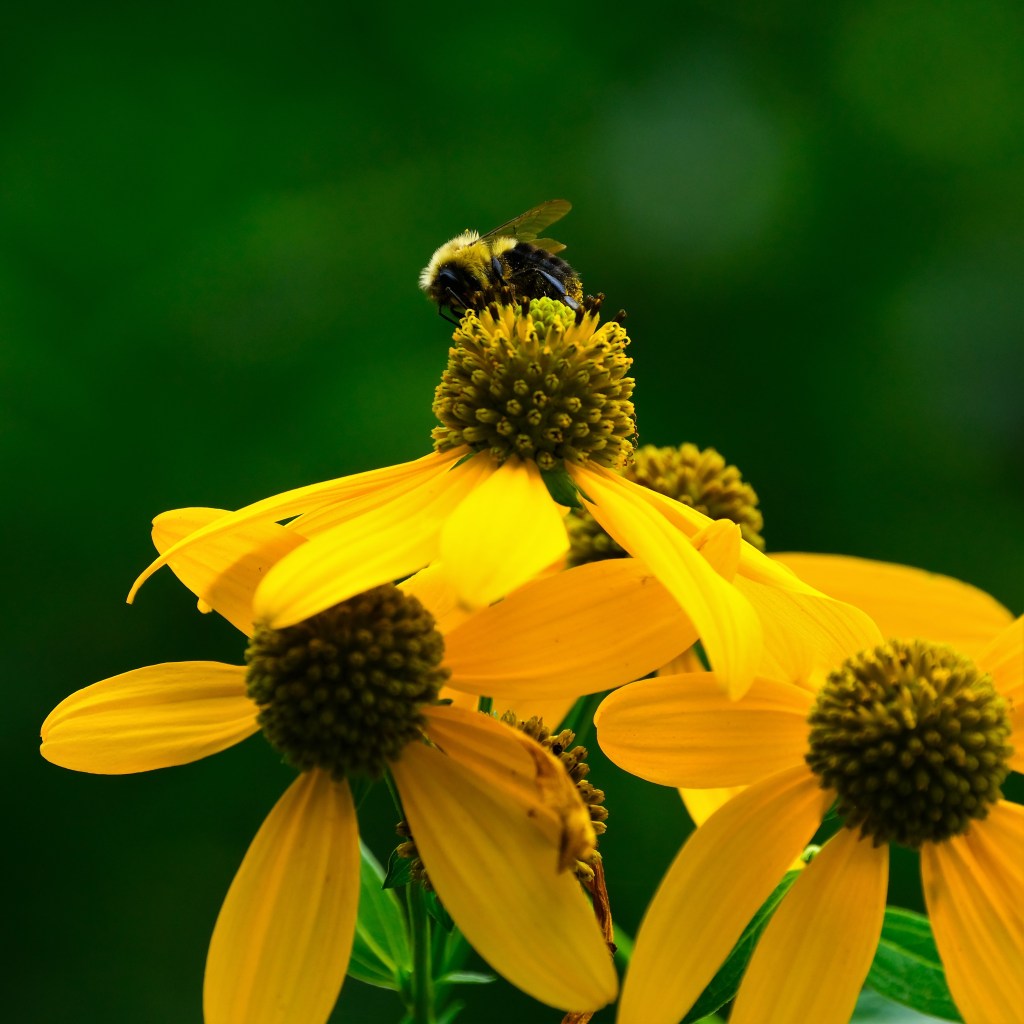 Yesterday, I had a nice-enough picture of a bumble bee on a cut-leaf cone flower from about halfway to the south end on the river trail, but it didn’t make the final cut. So, as I walked by the same flowers today, perhaps the same bumble bee said, “Let’s try that again. I think I can do better,” and it sure did.