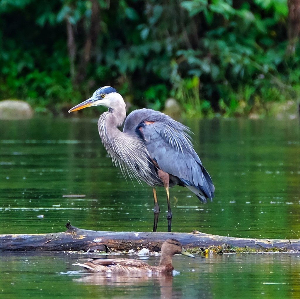 And a blue heron was taking a break from fishing and looking less contented.