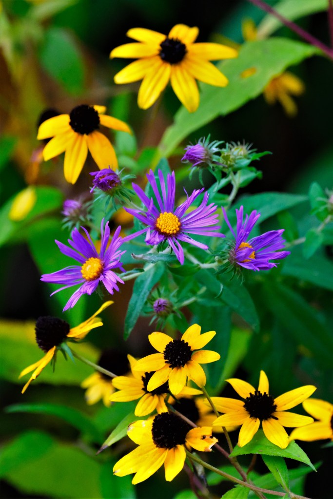Further south, by the falls, the asters continue to thicken and the black-eyed Susans continue to hold on, which can make for a pretty mix.