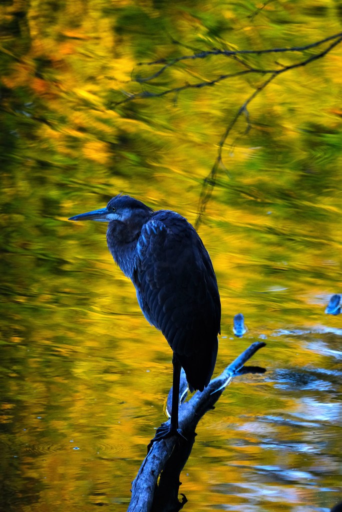 And a young blue heron was fishing at the falls, which is another sight we haven’t seen in a while.