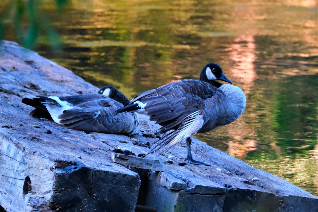 I also finally took this bittersweet picture. A Canada goose with a broken wing has been staying in the vicinity of the islands for a couple of weeks now, and its partner is staying with it. This morning is the closest to shore that they’ve come and the closest I’ve seen them together.