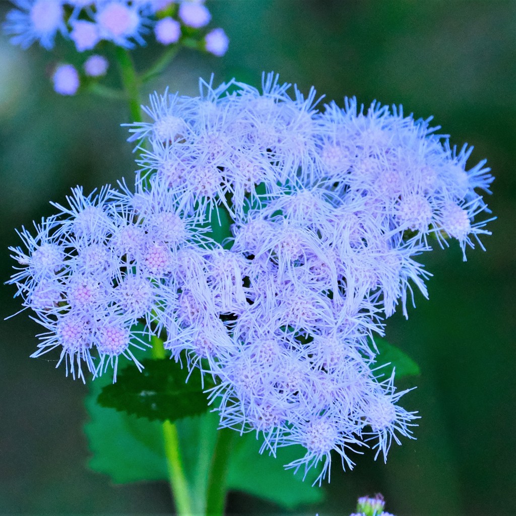 Finally, I stumbled upon two interesting new blossoms in the park. The first is blue mistflower (Conoclinium coelestinum), growing right beside the river.
