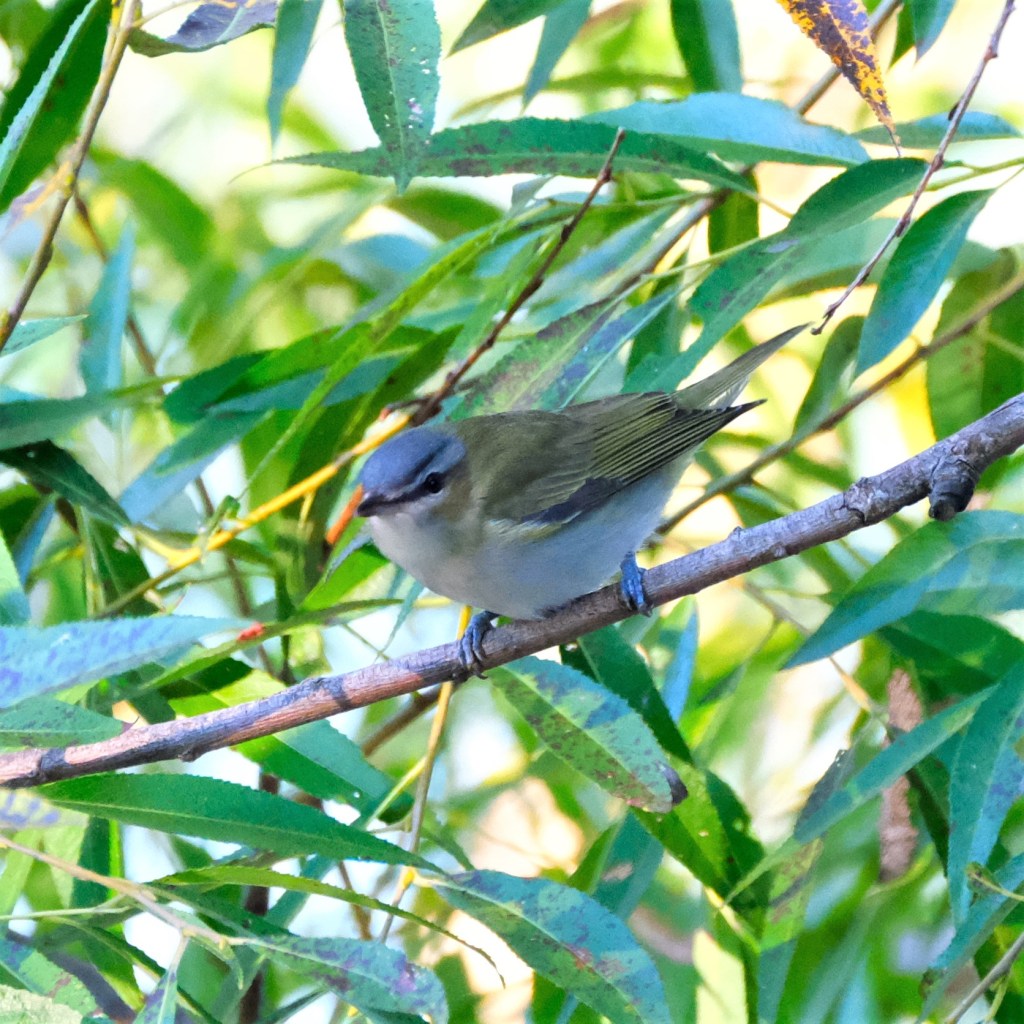 As I got to the water, I was greeted by another little cutie, this red-eyed vireo hopping around a willow tree hanging over the water.