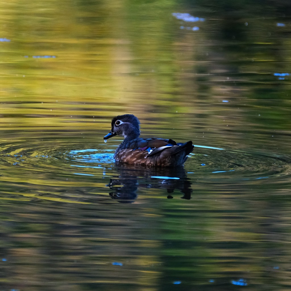 But this wood duck hen was busy feasting on the latest fly hatch that was all over the water surface.