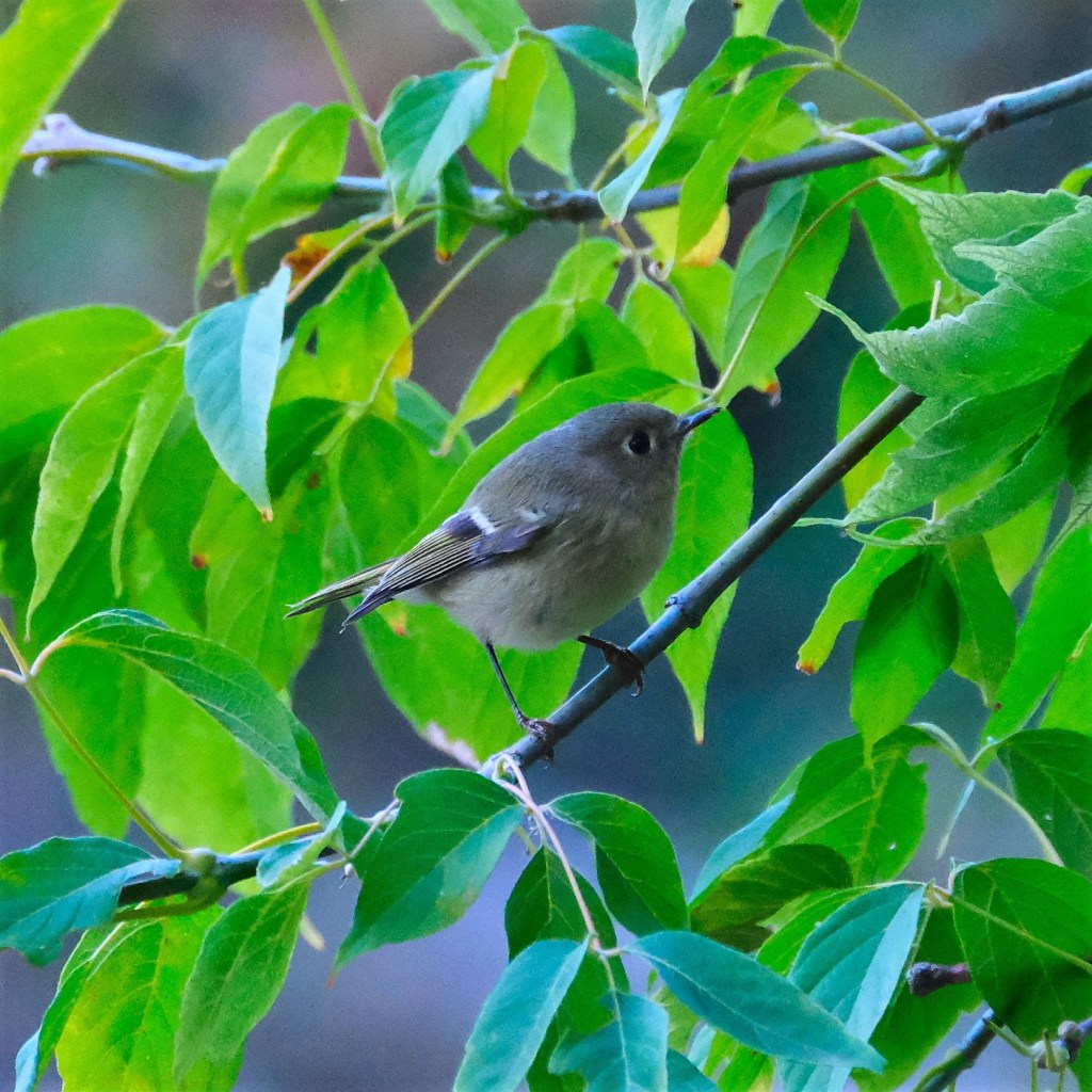 Back on shore yet another little cutie, this ruby-crowned kinglet was also hopping from branch to branch. After summering in the UP, or points north, it’s on its way to Tennessee, Kentucky, or points south, so it better eat up.