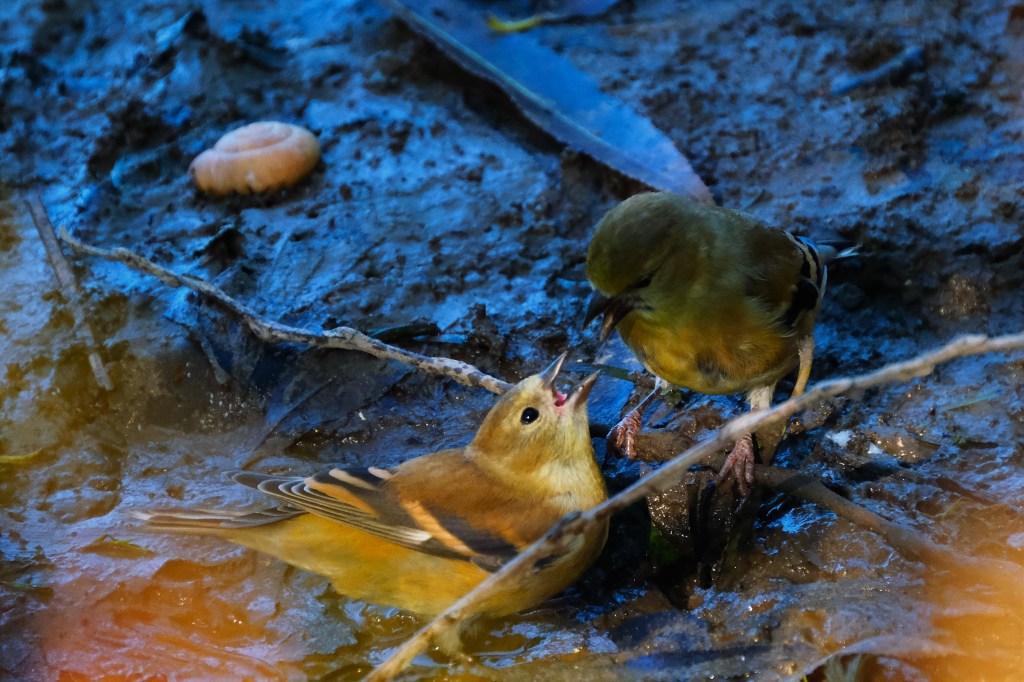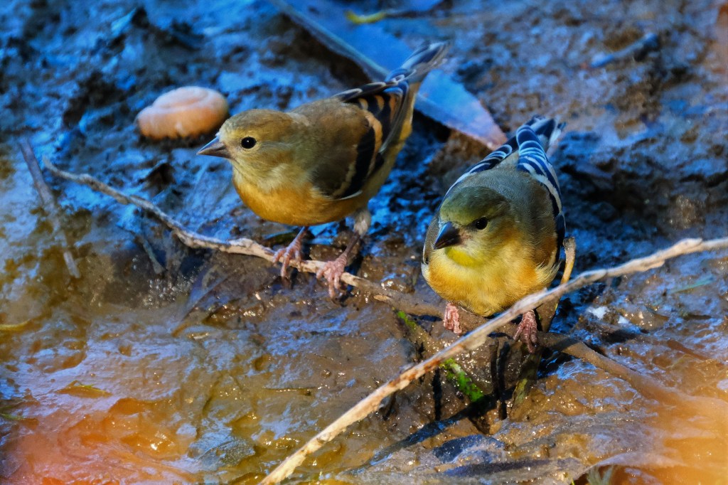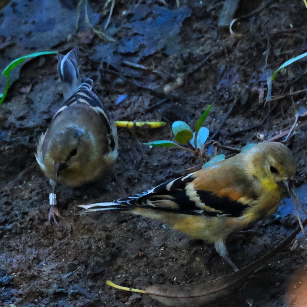 As I headed south, I spotted another little bird in a tree hanging out over the water, and upon closer inspection, it turned out to be a goldfinch, of which we’ve seen plenty lately. There were a few of them, however, and they all seemed to be heading to the ground, so I followed them to this surprising little scene.