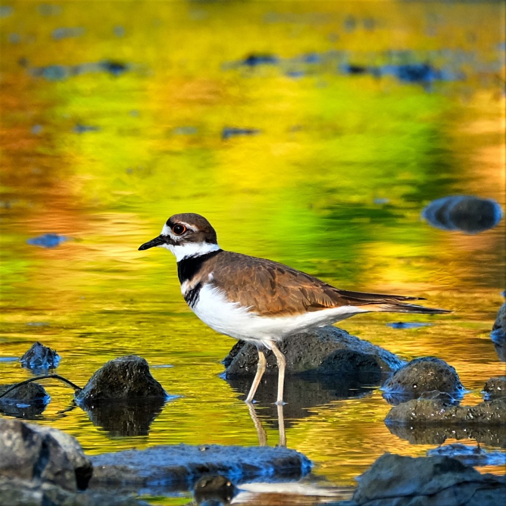 One new face for the season is this handsome killdeer busily foraging among the stones in the river. It’s only gotta make it to southern Illinois to get through the winter, so it’s got plenty of time to hang out with us.