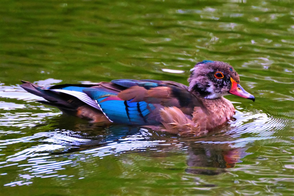There was a wood duck drake in full plumage on the pond again, trying to fit in with the regulars and perhaps get to know a nice hen.
