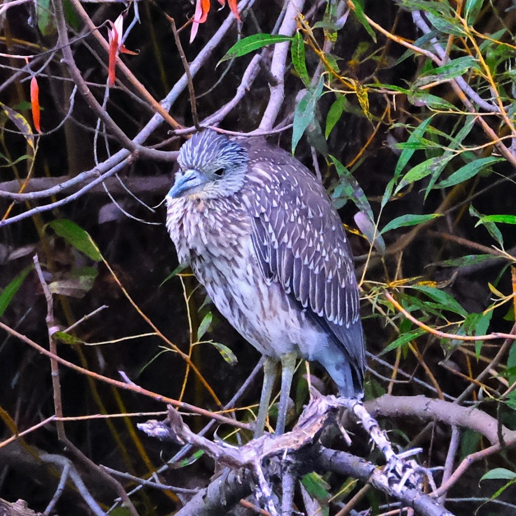 Our sleepy, young night-heron was still in residence and trying to keep its eyes open, per usual.