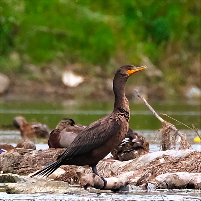 Meanwhile, a cormorant was back to chillin’ out among the mallards on one of the “sand” bars.