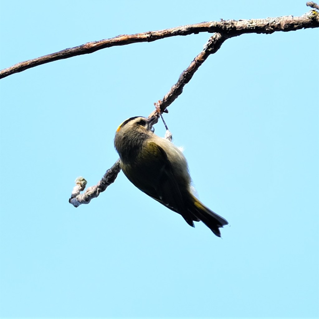 Here are a couple more acrobatic kinglet shots, just to keep the chickadees on their toes.
