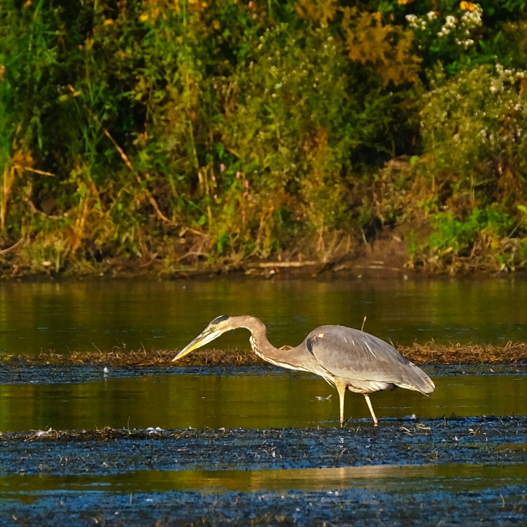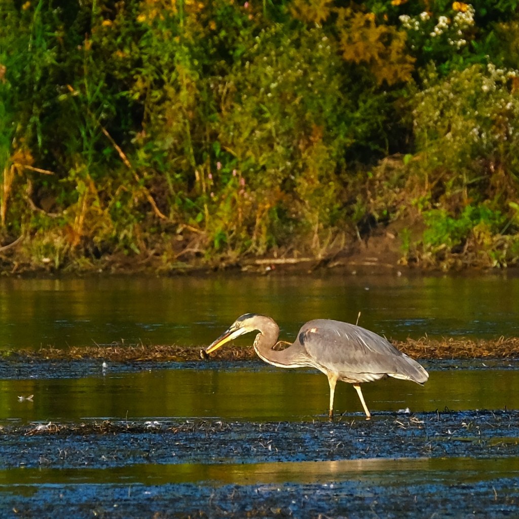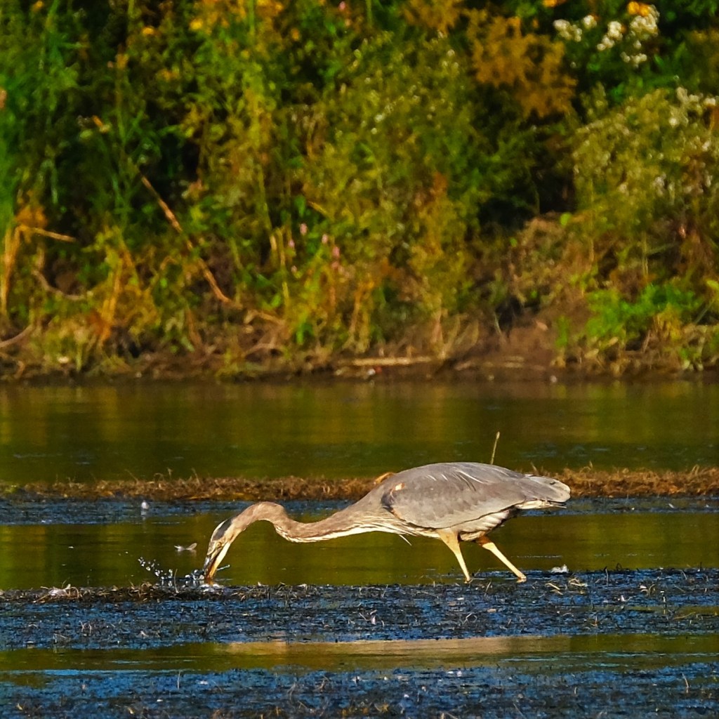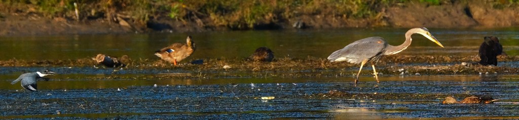 Besides all the kingfisher antics, this great blue heron was having some luck of its own fishing on the river.