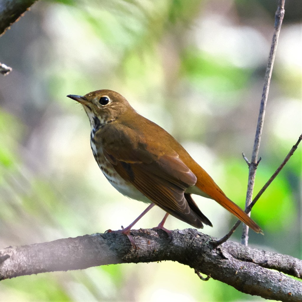 I finally had to tear myself away from the river and head inland, and that’s where I met this hermit thrush showing off its cinnamon tail, which the Swainson’s thrushes do not have.
