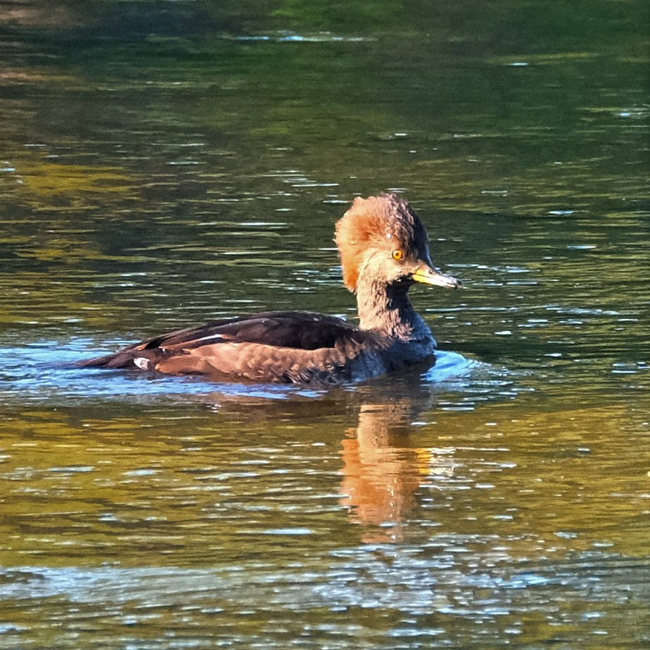 And a female hooded merganser, with quite the “hood” for a change, was busy fishing for crayfish, but I didn’t see her have any luck. Maybe that trio of youngsters ate them all a couple of weeks ago, but I hope not.