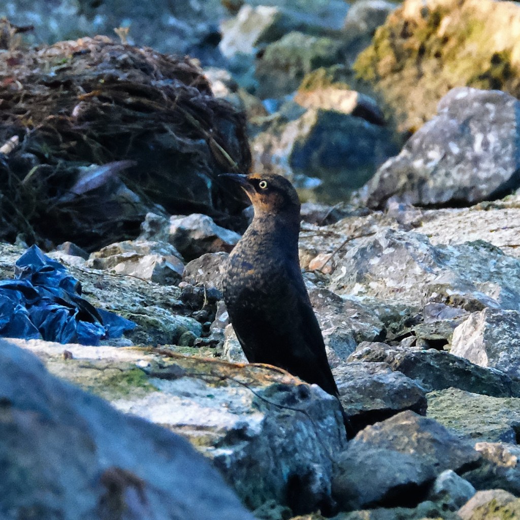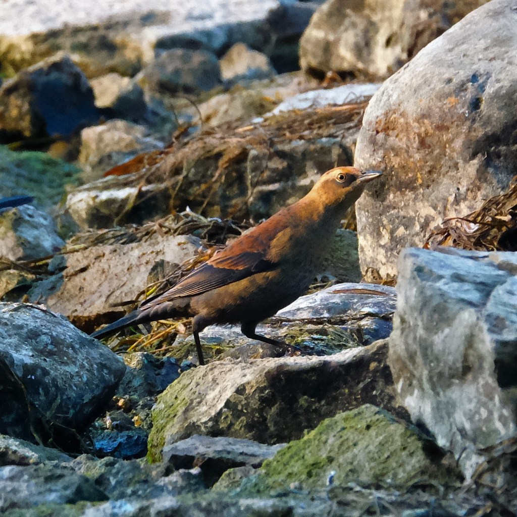 On my way south, there were a group of grackles foraging in the woods above the trail, and this one somehow didn’t notice that I was taking its picture.